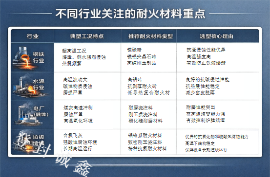 本文将从典型工业领域出发,系统梳理钢铁、水泥、电厂(燃煤)及垃圾焚烧行业对耐火材料的核心关注点,帮助读者更清晰地理解不同行业的选材逻辑。